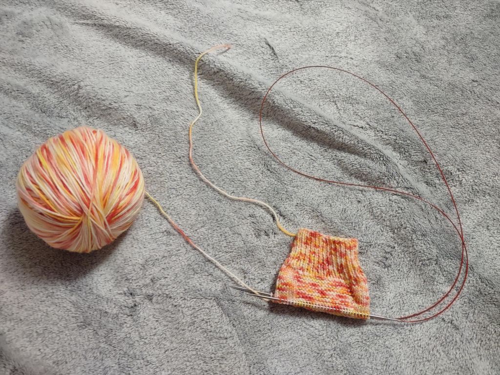 BEHOLD! For I have created part of a sock! This has been a fun project for me, as I’ve gotten to learn the Magic Loop method for knitting smaller items in the round using circular needles. I’ve had to rip it and re-start a few times, but once I got past the initial cast on and join, it’s been pretty smooth sailing. (I say, loudly and with confidence, before I’ve reached the heel. *knock on wood*)
