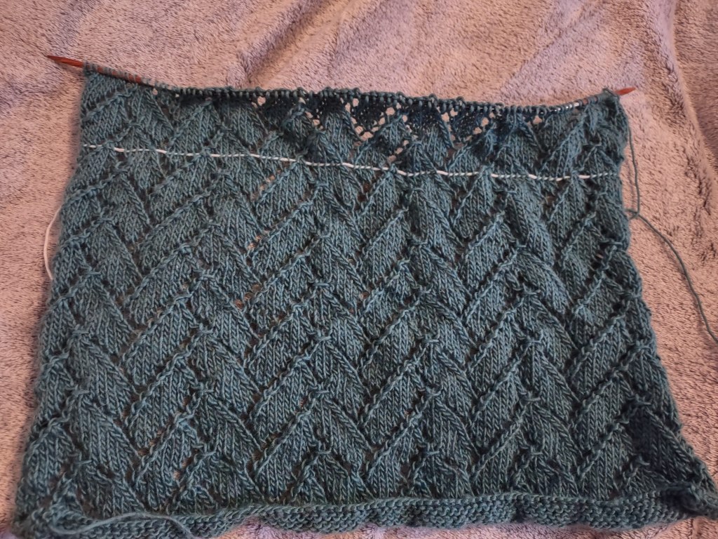 Slowly but surely, I’m making progress. I also remembered to move my lifeline up this time, so I won’t have to rip out half of what I’ve done just because I’ve dropped a stitch and haven’t figured out how to fix it. Yay me!