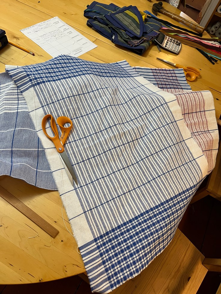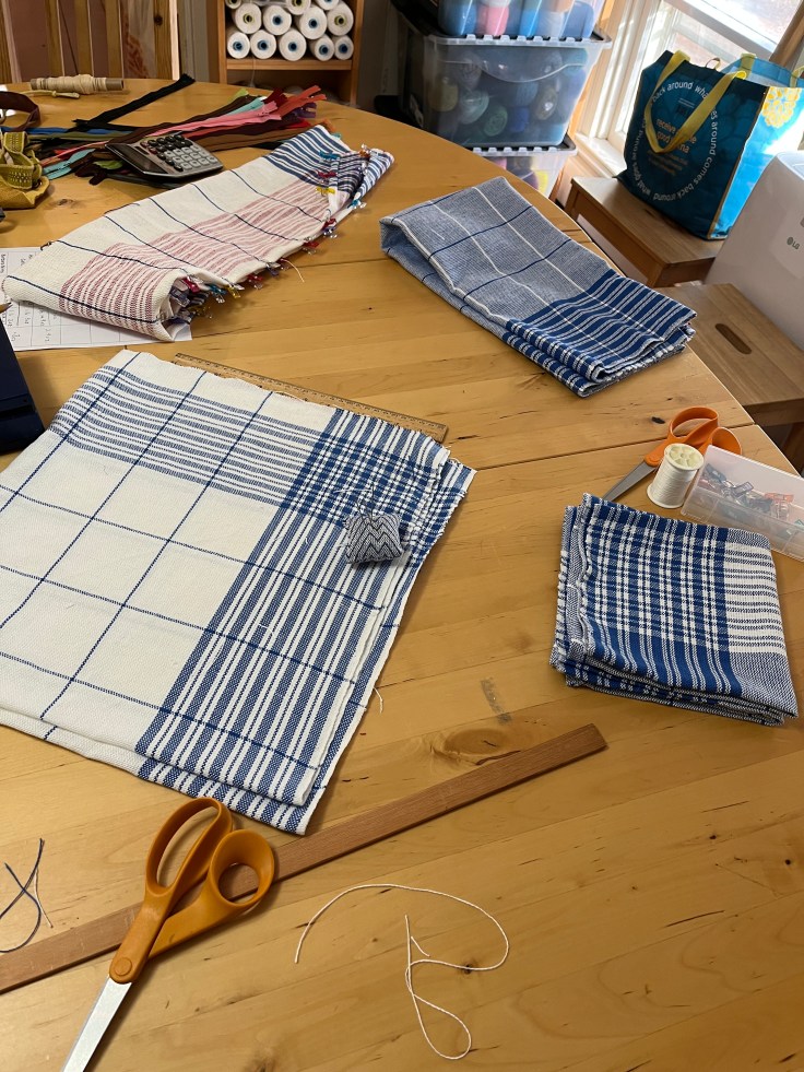 I had an absolute blast in Massachusetts at Vavstuga working on a whole pile of stuff. I ended up with two tablecloths, four matching napkins each, and 3 dishtowels (plus buttons!)