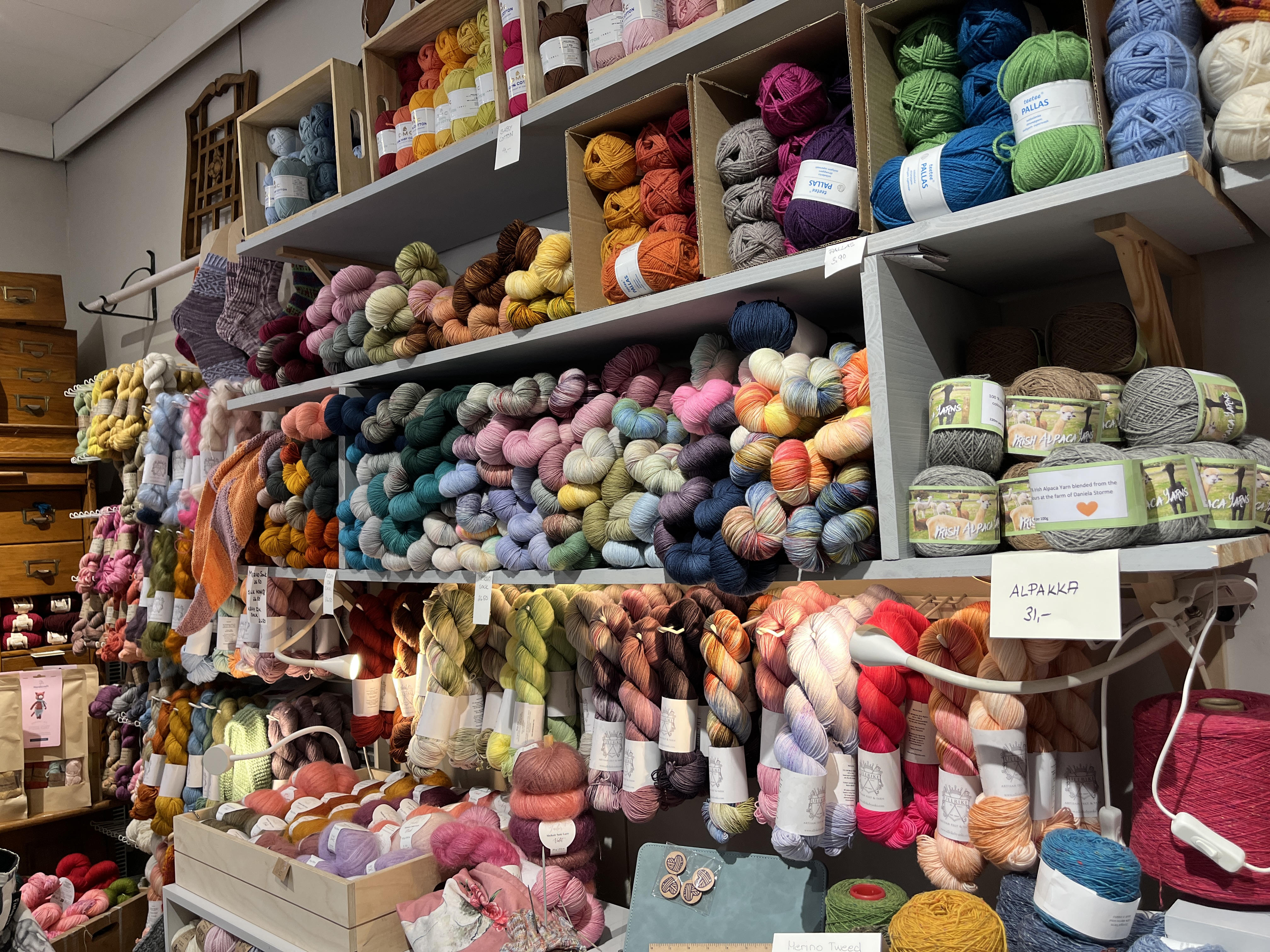 A handicraft store in Porvoo, just an hour from Helsinki, I was impressed with the range of yarns available in this tiny shop. There were also a large number of handknit items for sale, created in-shop by the owner herself!