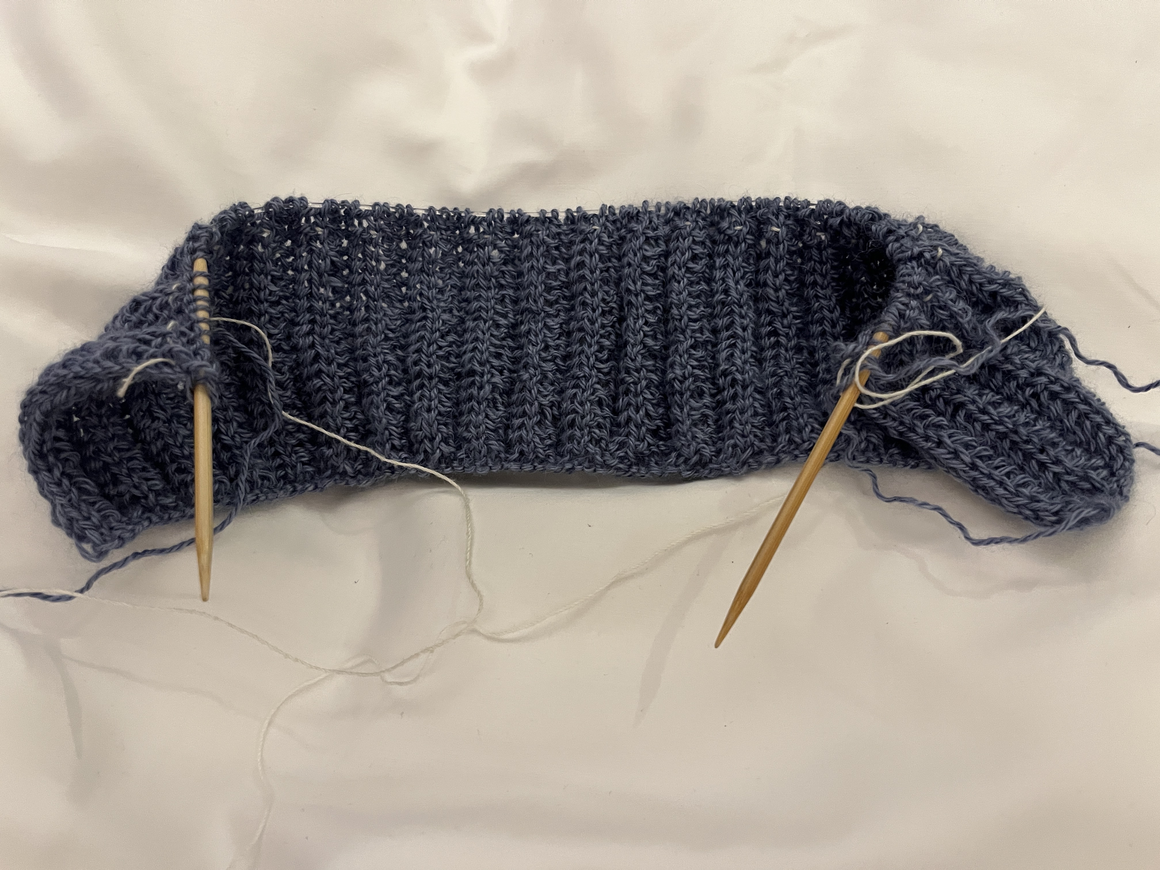 My own “design” if we’re being generous. I’m using a broad shaker rib (AKA – lazy brioche) to create a wide, squishy scarf that I will attach at the ends and make into a cowl. I’m using the beautifully soft Alpakka Silke from Sandnes Garn (it’s blue, I promise, even if the lighting in the photos doesn’t agree!). I’d originally intended to use it for a lacy scarf, but really didn’t like how that was turning out. I’m also much happier and more relaxed working on the simply 4-stitch repeat of the cowl.