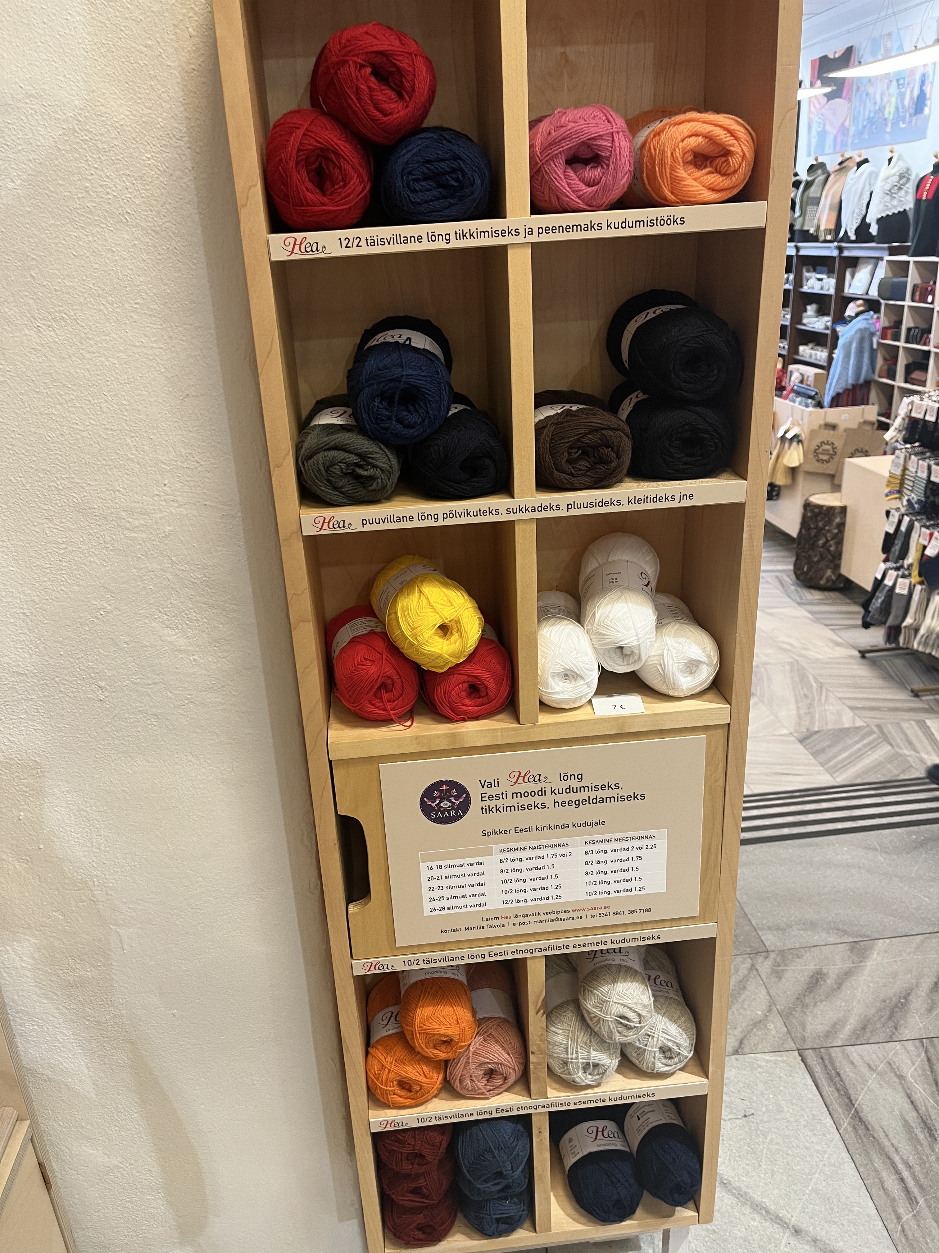 These are a local chain of Estonian handicrafts. Filled with beautiful souvenirs and gorgeous Estonian sweaters, they also have several small shelves of Estonian wool yarn. I picked up some Haapsalu lace yarn here in classic white, as well as a multi-color pack.