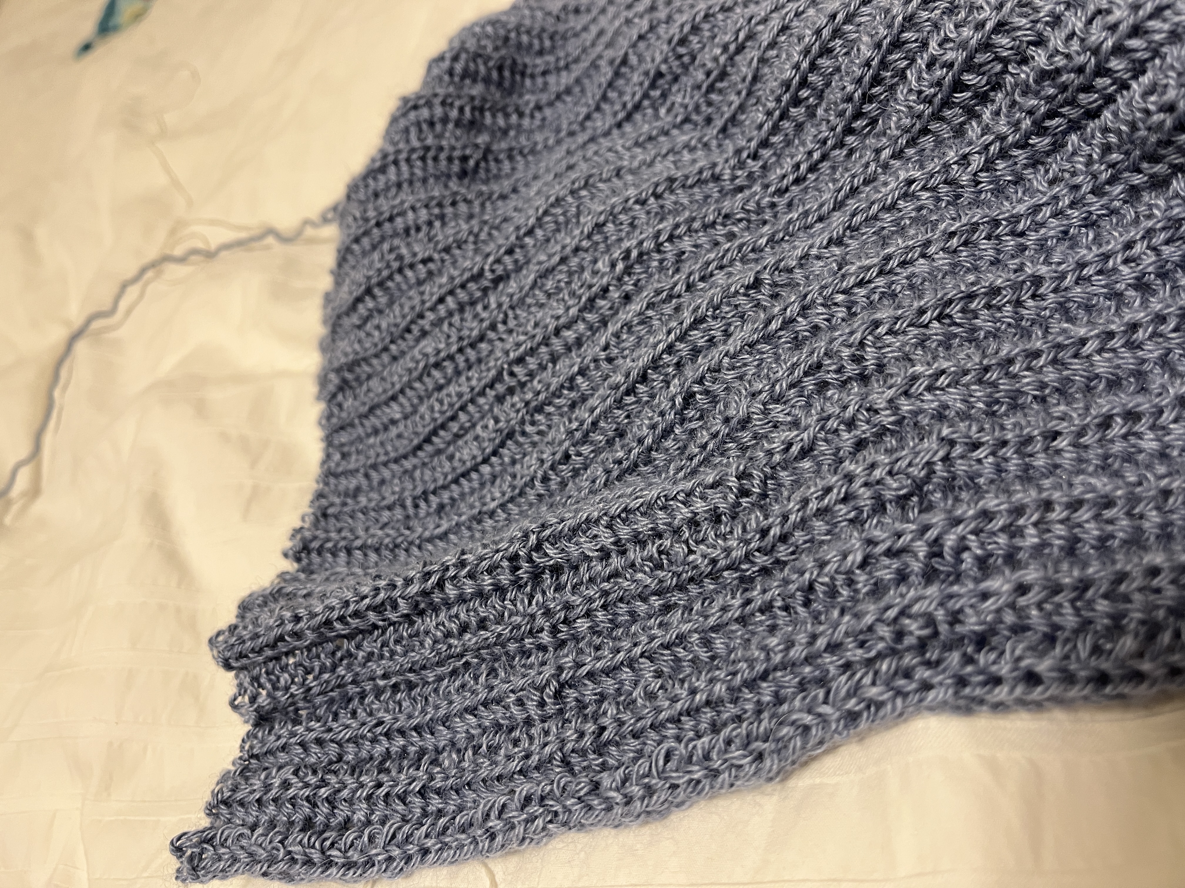 Trucking along on this one. It’s soft and squishy, which is the main point. It’s my go-to project for when I’m in meetings or classes and want to keep my fingers busy but don’t have the attention to spare for a more in-depth pattern.