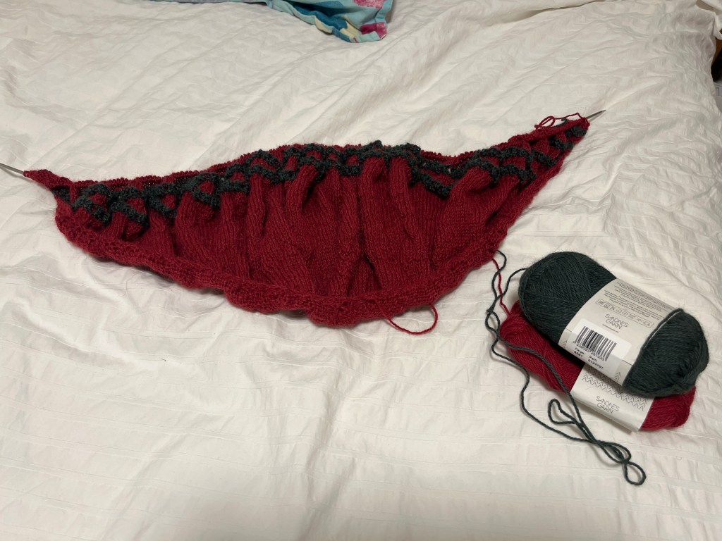 I’m using red and green Alpakka yarn from Sandnes Garn, also picked up in Sweden.
