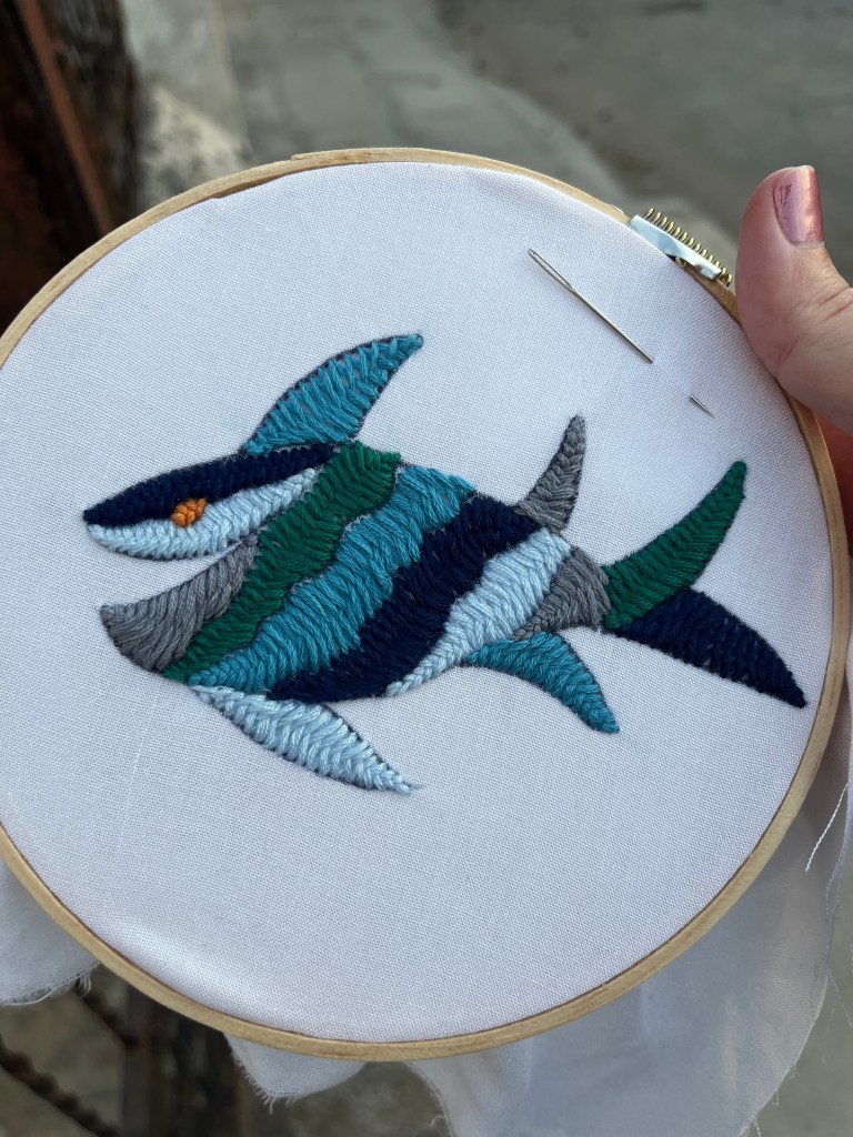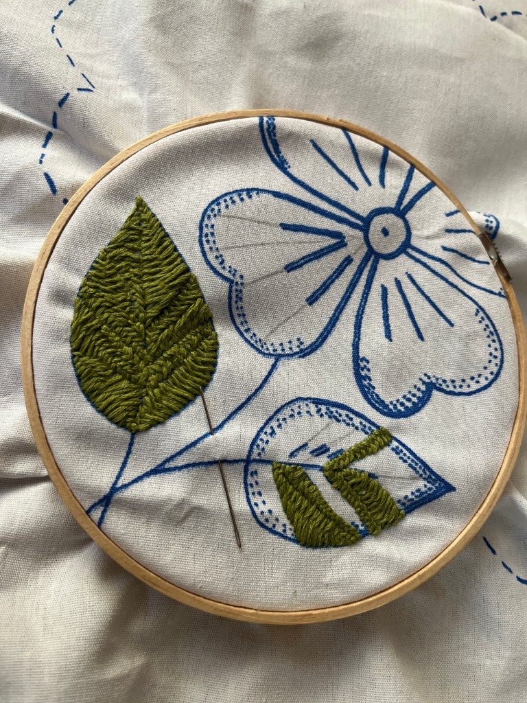 I bought another pattern from Mayra and am working my way through it to keep up with practicing. It also has quite a bit of white space, so I’ll be trying my hand at drawing some flowers and animals and then embroidering them. I’m looking forward to picking lots of bright colors to use!