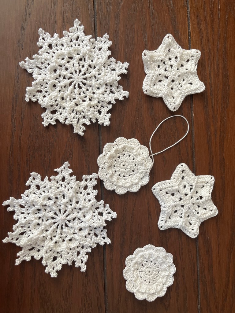 Working on my annual batch of snowflakes! I don’t have the tools to block them here, but I’ll do them when I’m back in the US in November and get them in the mail to their new homes.