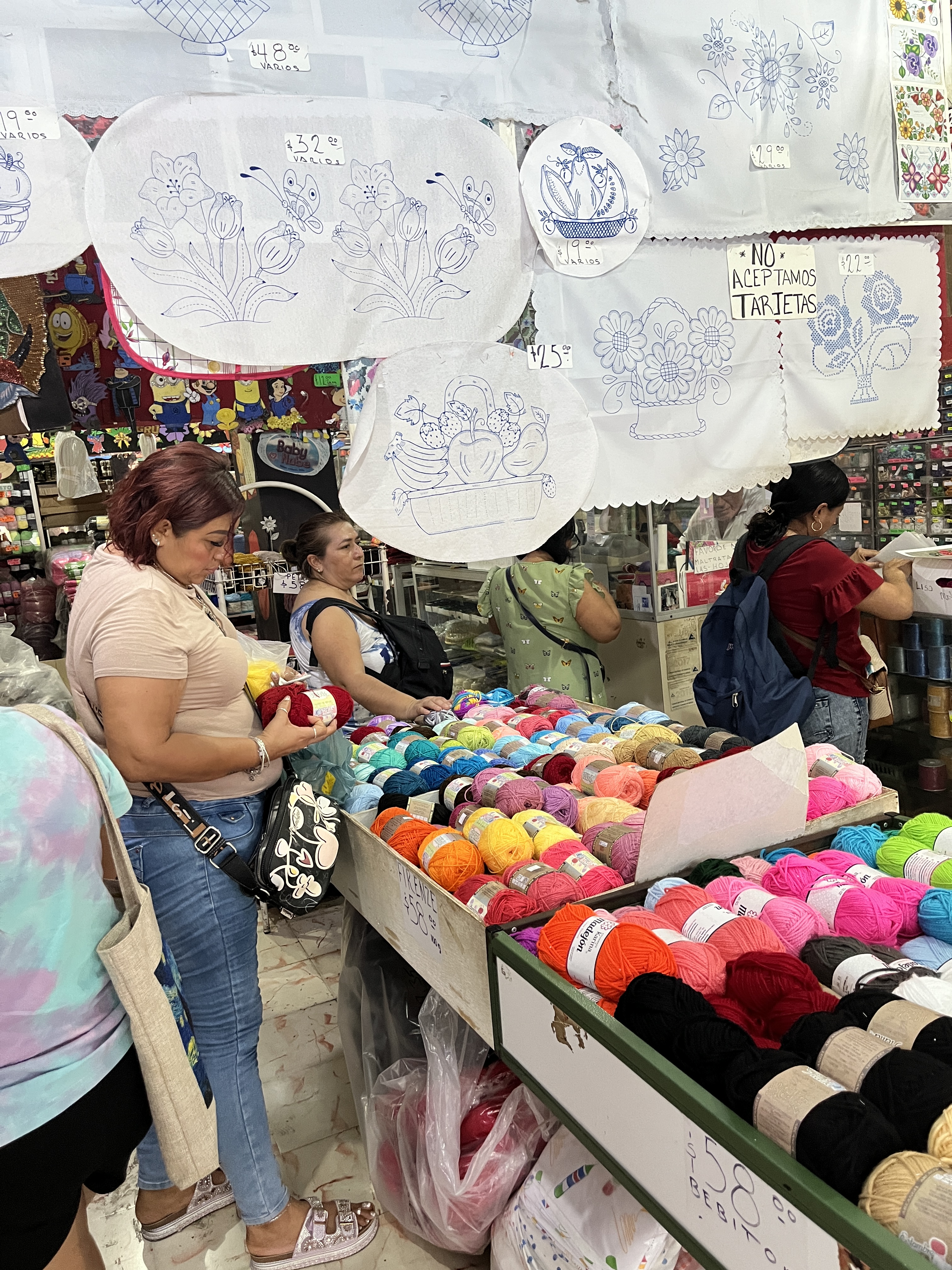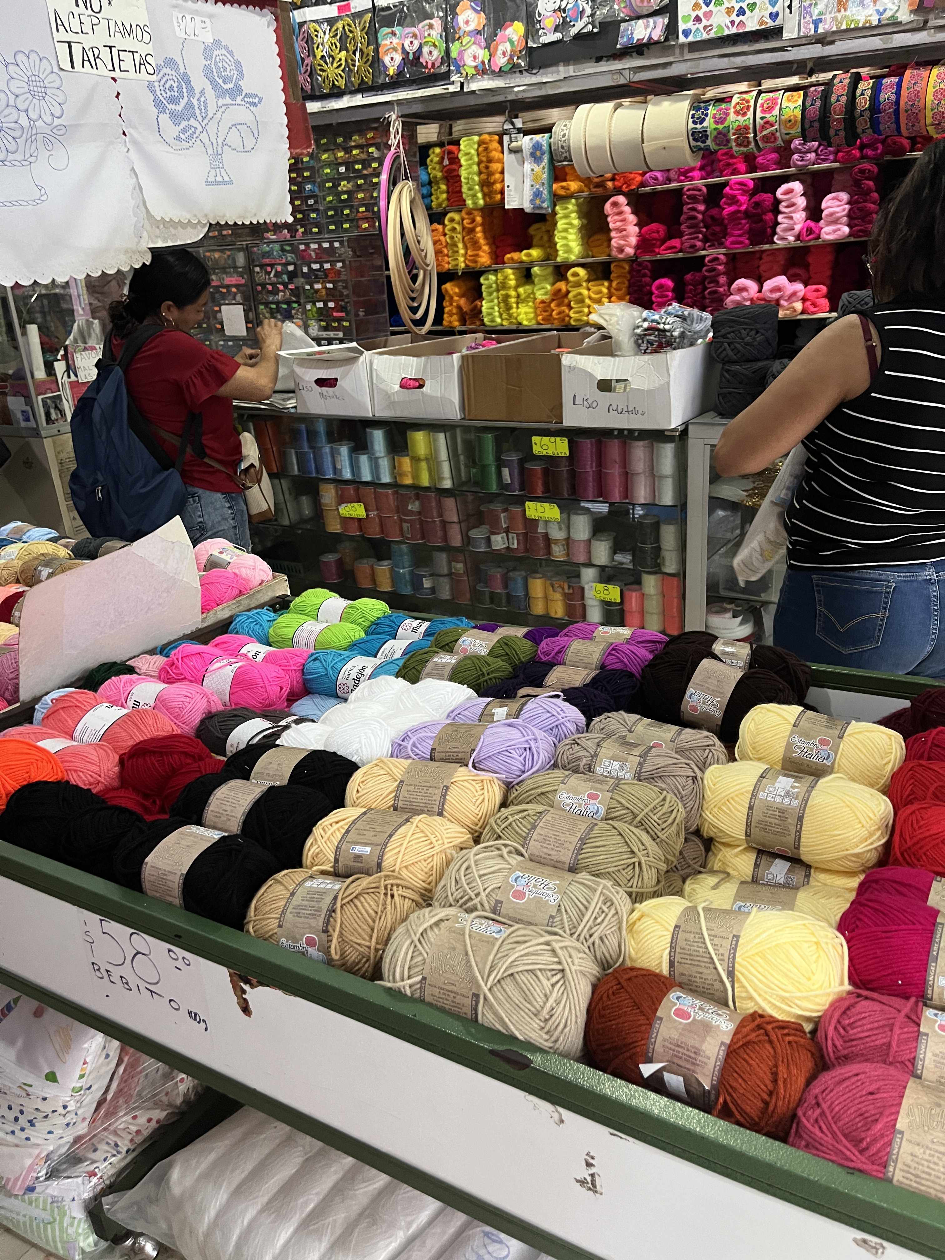I have had the opportunity to check out several local yarn stores and haberdasheries, however most of them have signs prominently displayed indicating that photos are not permitted. I’ve posted a few from one of the stores that didn’t mind me snapping a few pics. The shops down here lean heavily on lightweight cotton yarns – unsurprising given the heat. There are also plenty of acrylic yarns available, but very little wool. In my experience, crochet and weaving are paramount across Mexico, but you can still find a knitter or two if you start chatting with folks.